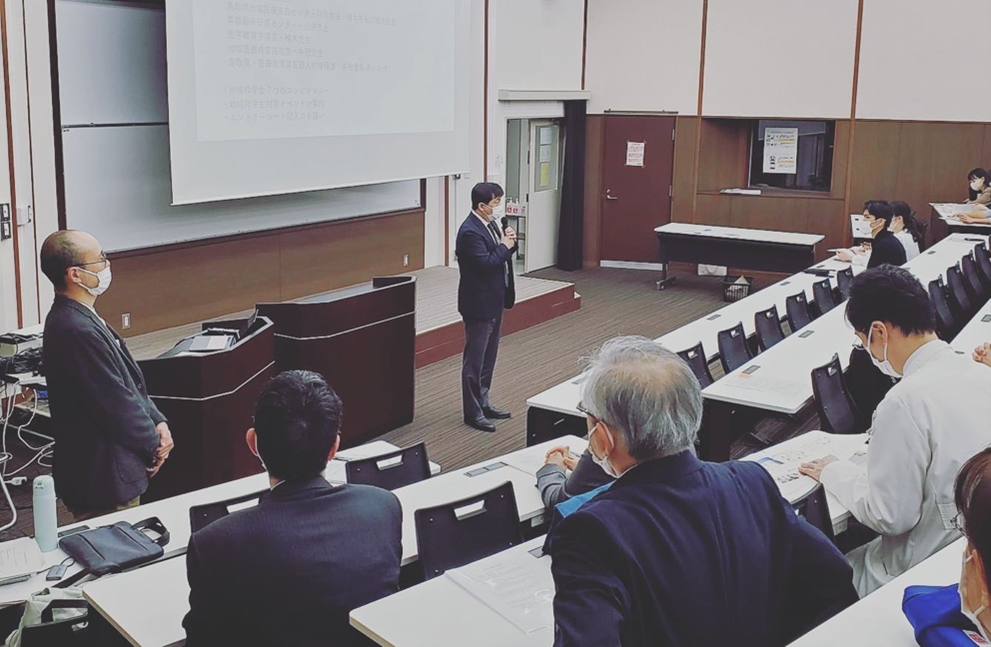 284月 2023 2023年度の地域枠総会・制度説明会をおこないました 4月21日夕方に、新しく入学した地域枠新入生も含めた1〜4年生の約140名を対象に、地域枠総会と制度説明会をおこないました。景山医学部長、谷口医学科長、卒後臨床研修センター・山田教授、地域医療支援センター・福本先生および紙本先生、医学教育学講座・植木教授、地域医療共育支援推進室・中野教授、また、鳥取県福祉保健部医療政策課医療人材確保室の井田室長・濱崎係長も臨席されました。 (孫大輔) BY tottori-idai-main 0