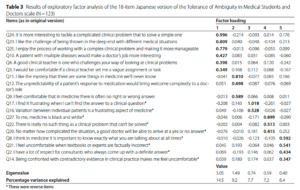 表3. 医学生・医師における曖昧さ耐性尺度(18項目)日本語版の探索的因子分析の結果(N=123)