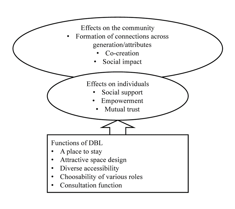 - 本研究では、社会的処方の場として、医療・福祉の専門家が運営するコミュニティ図書館(だいかい文庫)が地域住民に与える影響に着目して質的分析(SCAT)をおこなった