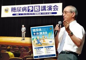 講演会は6月24日、鳥取県米子市淀江文化センターであった。主催は「ライオンズクラブ(LC)国際協会336―B地区7R・8R」(西尾慎一地区ガバナー)で、鳥取市会場に続いての開催。LCは糖尿病予防を重点取り込み項目に掲げている。