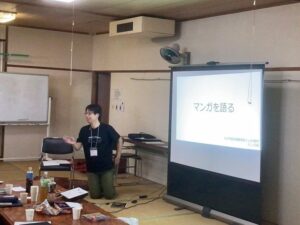 初日は、谷口・今岡・中井の各教員によるワークショップ「私が考える地域医療」と、井上和興先生(大山診療所)の「マンガを語る」ワークショップを行いました。医療系のマンガを用いて「推し」を伝えるために自身の感情を言語化する、ユニークな活動でした。