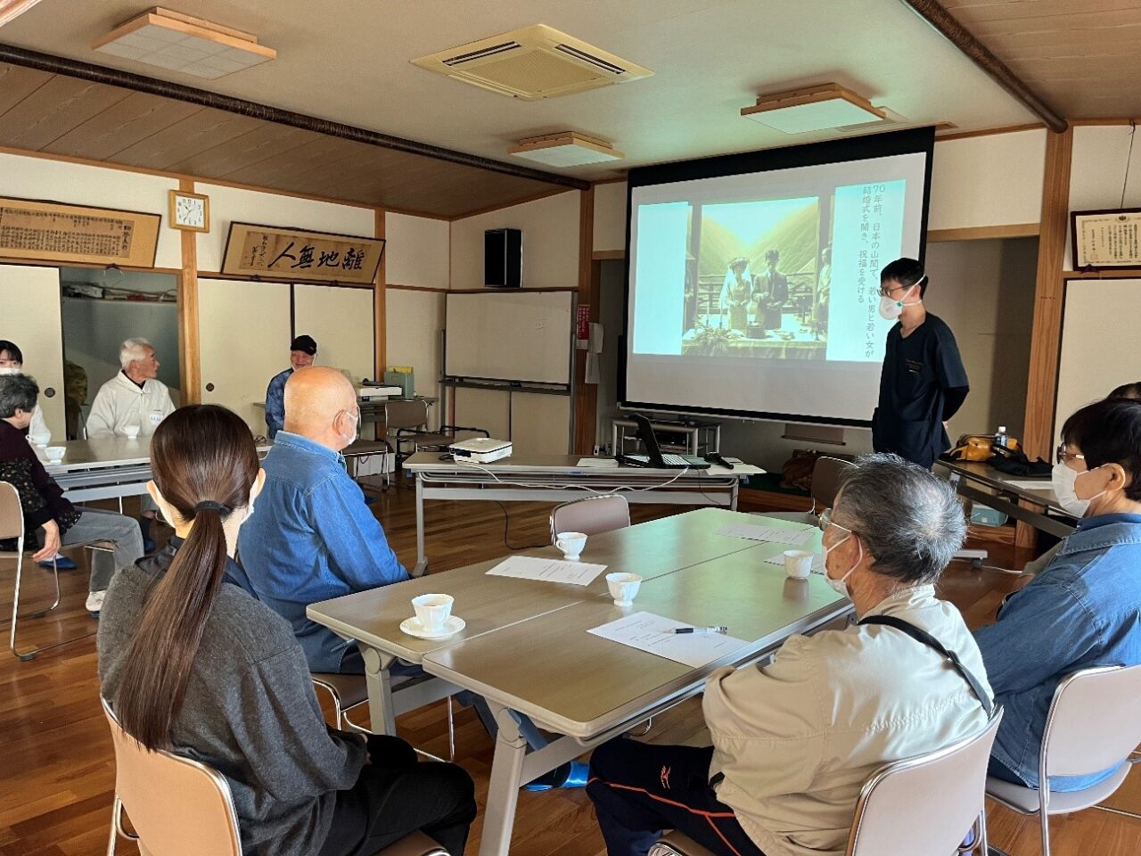 2023年10月13日 日野町内の下黒坂地区で「目指せ健康長寿! 過去と未来を考えながら話し合おう 長生きの秘訣」というテーマで健康教室を開催しました。