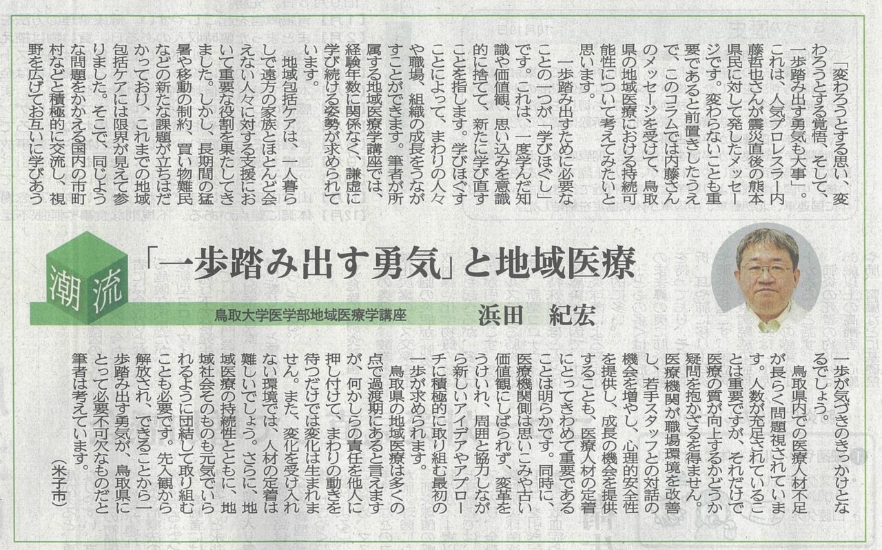 2010月 2023 日本海新聞【潮流】に掲載されました。 2023年10月19日 日本海新聞 7面 潮流 に掲載されました。 ~「一歩踏み出す勇気」と地域医療~ BY tottori-idai-main 0