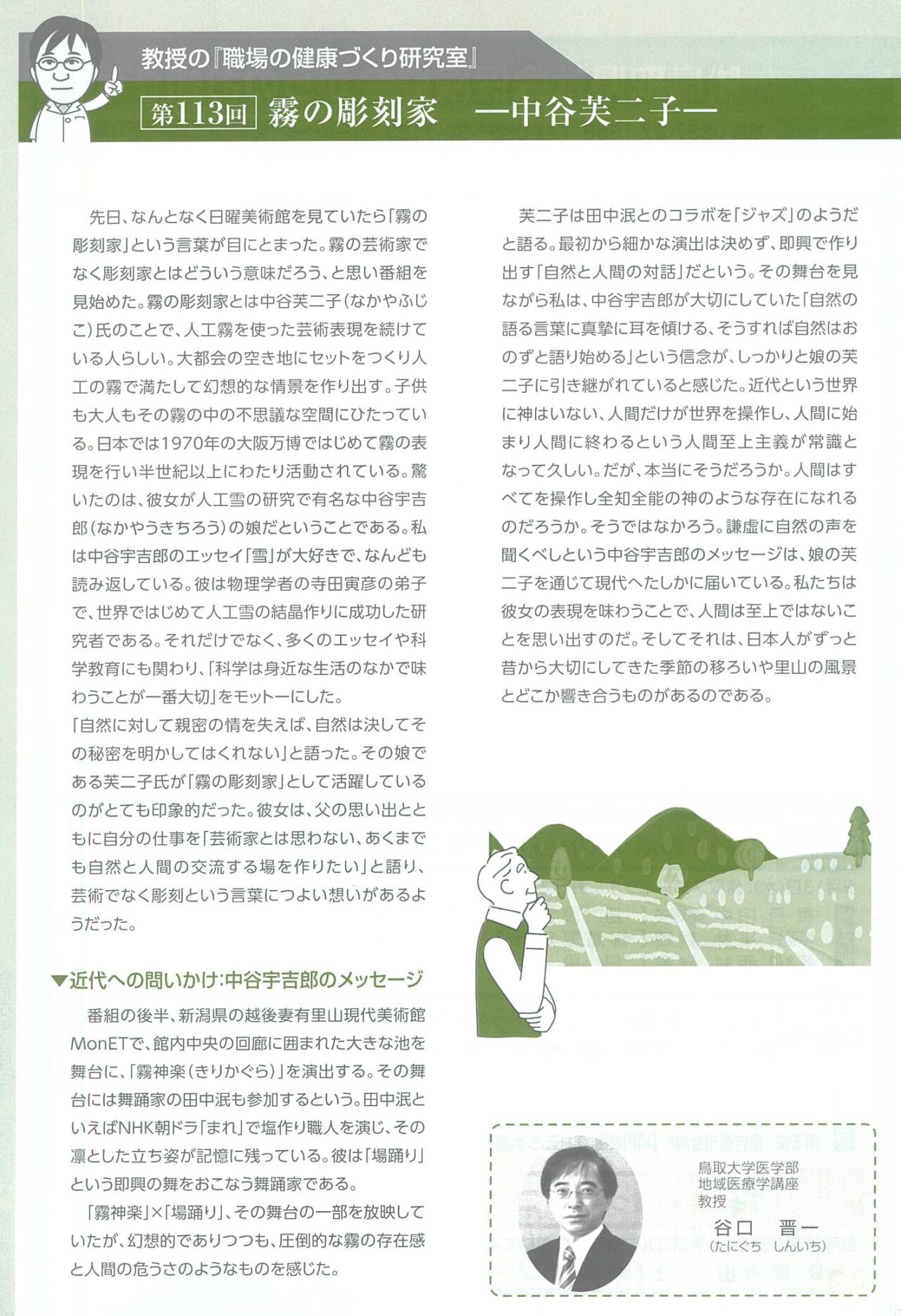 211月 2023 「社会保険とっとり」に掲載されました。 社会保険とっとり Vol.630 2023年10月号 教授の『職場の健康づくり研究室』 第113回 霧の彫刻家 ―中谷芙二子― BY tottori-idai-main 0