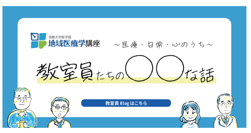 当講座のHPのブログは、 だいたい年に2回のペースで講座のメンバーで担当しています。 医療に限らず、様々な視点で教室員が自由に書いていますが、 このブログのタイトルおよびバナーの2段階のコンペを行いました 。約10のアイディアが寄せられ、完成したブログのテーマが「 教室員たちの◯◯な話 ~医療・日常・心のうち~」です。 バナーは写真を参考にしてください。