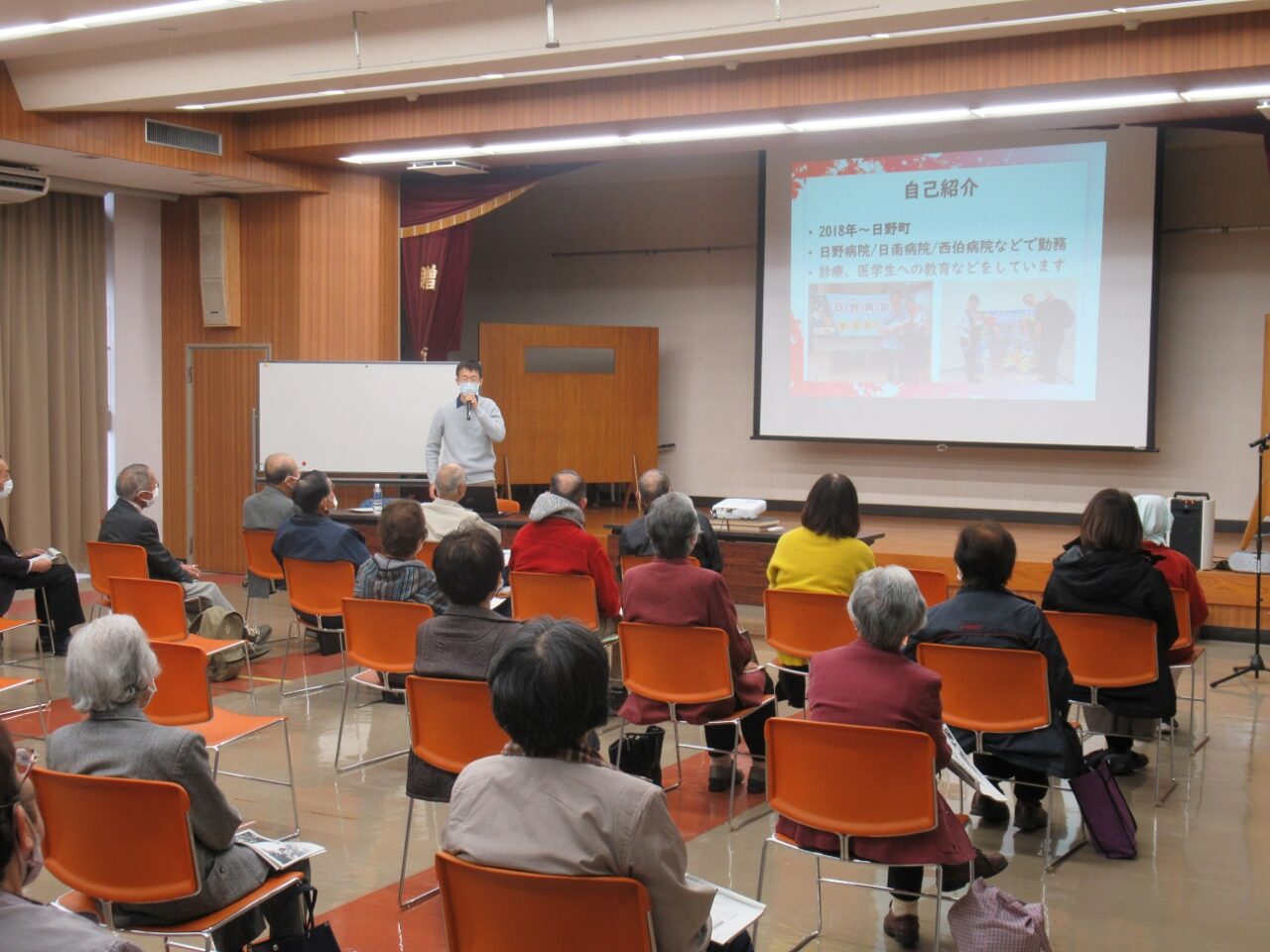 11月17日に鳥取県日野町の生涯学習の集まりであるおしどり学園にて、お話をさせていただきました。最近何かと耳にするフレイルについて、知識だけではなく意識を持ってもらい、行動に繋げられるように考えて、お話をさせていただきました。