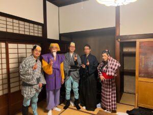 2311月 2023 健康啓発時代劇ドラマの撮影を行いました さる10月29日に日野町内にてチャンネルひので放送予定の、谷口黄門様が行く~フレイル編~の撮影を行いました。2021年に撮影したポリファーマシー編に次いで第2弾になります。 町人の娘を助けた黄門様。娘の父親は誰でも彼でもフレイルと診断する医師でした。その背景になにかあると感じ取った黄門様は・・・ 早朝から日が沈むまで撮影に臨んだ黄門様御一行。完成が楽しみです。放送は2024年春を予定しております。お楽しみに! BY tottori-idai-main 0