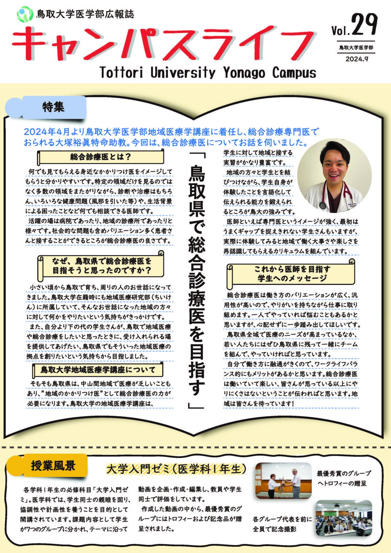 269月 2024 鳥取大学医学部広報誌『キャンパスライフ』で特集されました 鳥取大学医学部広報誌 『キャンパスライフ』で大塚先生のインタビュー記事が特集されました。 BY tottori-idai-main 0