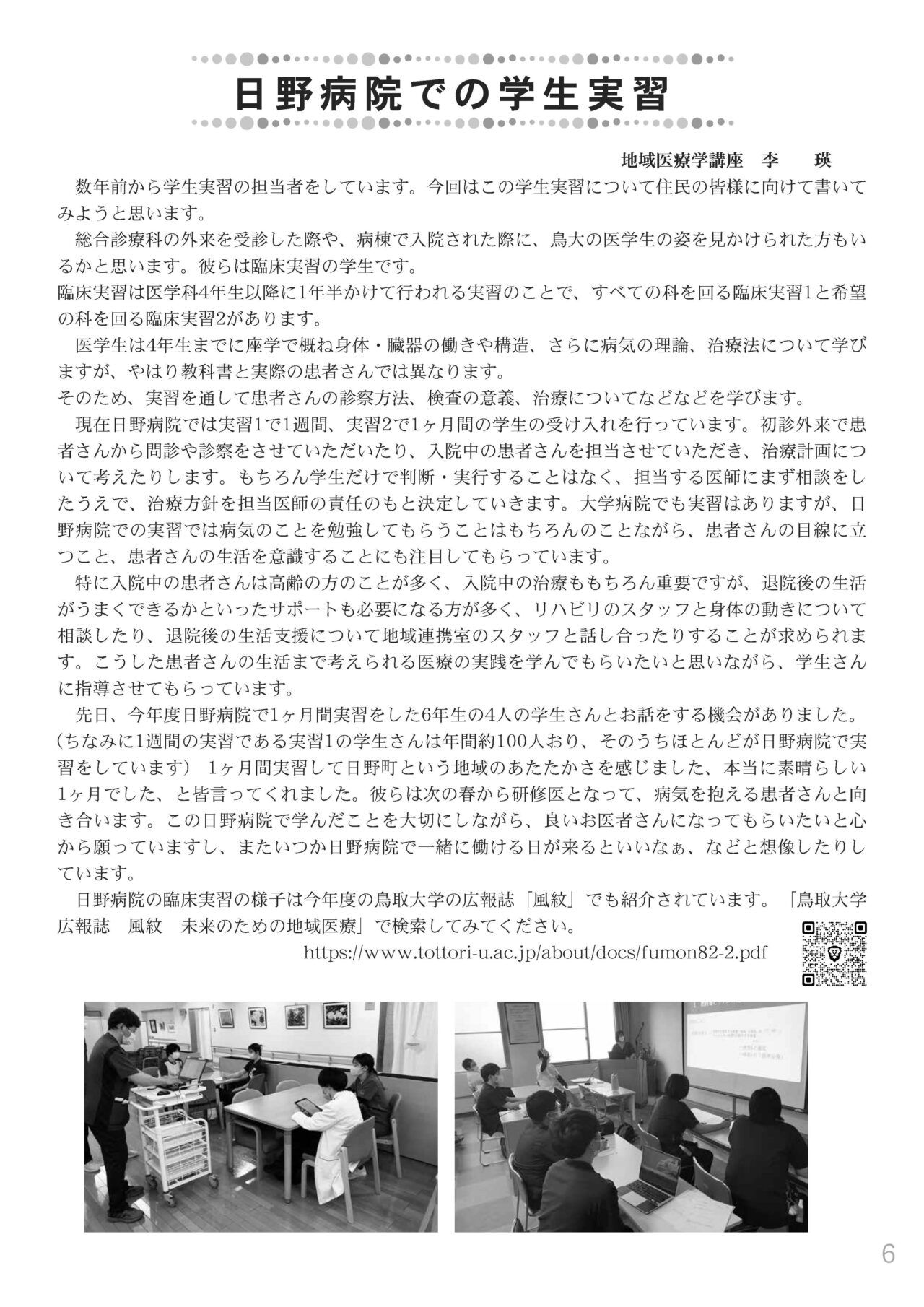日野病院組合だより『せせらぎ』に、李先生の記事が掲載されました。