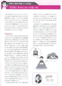 103月 2025 「社会保険とっとり」に掲載されました。 社会保険とっとり vol.646 2025年2月 教授の『職場の健康づくり研究室』 第129回 冬のにおいの思い出 BY tottori-idai-main 0
