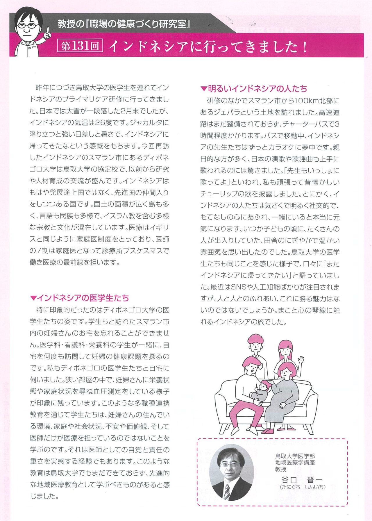 304月 2025 「社会保険とっとり」に掲載されました。 社会保険とっとり vol.648 2025年4月 教授の『職場の健康づくり研究室』 第131回 インドネシアに行ってきました! BY tottori-idai-main 0