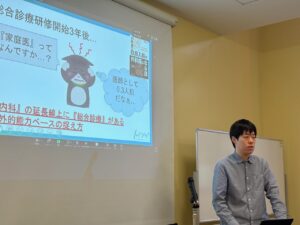 218月 2025 総合診療・家庭医療プログラムのレジデント修了式を開催しました(3月15日) 2025年3月15日、倉吉未来中心セミナールームにて、2024年度総合診療・家庭医療プログラムのレジデント修了式を執り行いました。鳥取の総合診療専門医を育成するプログラムからは上平遼先生が、家庭医療専門医を育成するプログラムからは小原亘顕先生が、それぞれ研修を無事修了され、これまでの研修生活を振り返るご発表をいただきました。お二人が今後、専門医試験を経て、新たな一歩を踏み出されることを心より願っております。 (孫) BY tottori-idai-main 0