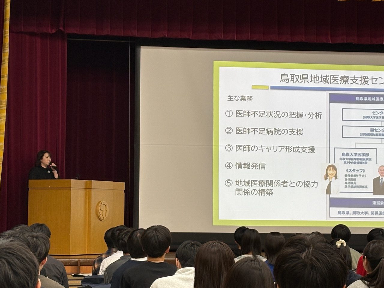 19月 2025 新入生オリエンテーションで孫准教授がお話しました(4月4日) 2025年4月4日、鳥取大学医学部医学科の新入生オリエンテーションにて、医学部記念講堂において地域医療学講座の孫准教授が講座からのお知らせをプレゼンテーションしました。地域医療に関する教育内容をはじめ、大山町でのフィールドワークやインドネシアでの総合診療研修など、さまざまな教育イベントについて紹介がありました。また、鳥取県地域医療支援センターの紙本特命助教からは、地域枠制度の概要についての説明が行われました。 BY tottori-idai-main 0