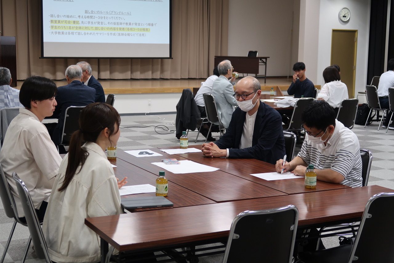 2025年度地域医療体験実習後の意見交換会が西部医師会館にて6月2日に開催され、派遣先施設(西部医師会)の医師11名、医学科4年生12名、教員8名が参加し、活発な対話が行われました。