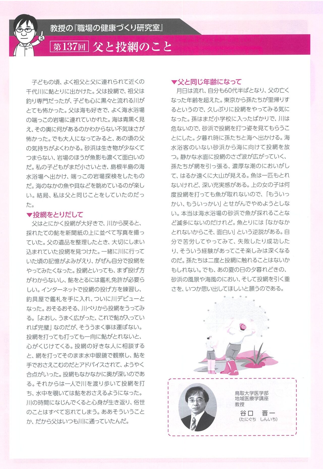 1811月 2025 「社会保険とっとり」に掲載されました。 社会保険とっとり vol.654 2025年10月 教授の『職場の健康づくり研究室』 第137回 父と投網のこと BY tottori-idai-main 0