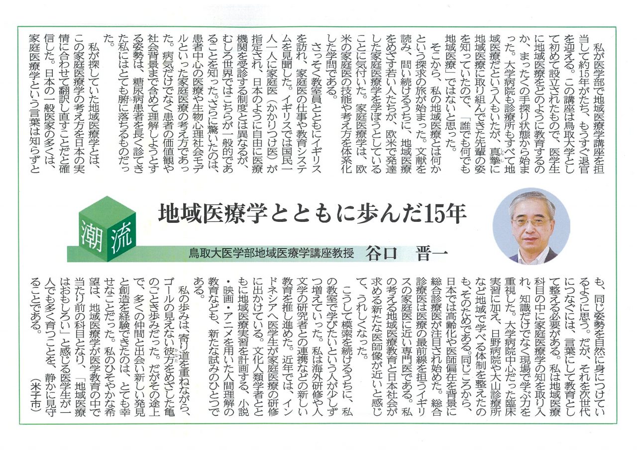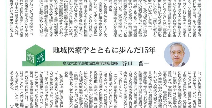 191月 2026 日本海新聞【潮流】に掲載されました 2026年1月18日 日本海新聞19面 潮流 に掲載されました。 ~地域医療学とともに歩んだ15年~ BY tottori-idai-main 0