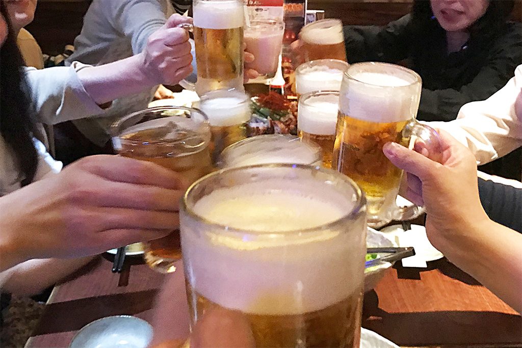 1日中鼕をたたき練り歩いた後、心地よい疲労感と興奮のまま突入する直会(打ち上げ)は、それはそれは盛り上がります!