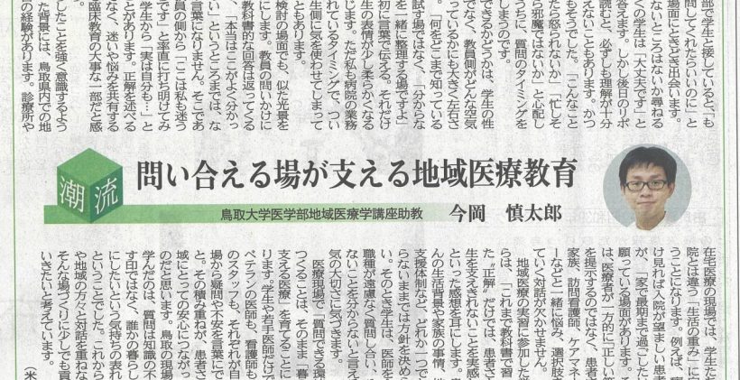 2025年12月18日 日本海新聞15面 潮流 に掲載されました。 ~問い合える場が支える地域医療教育~