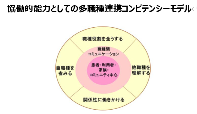 訪問診察で医師が若干困惑している場面を描いているマンガを題材にどんなことを感じたかを書き出してもらいました.感じたことを参加者に書き出したあと,参加者同士で対話をすることで,訪問看護師としてどのようなことを大切にしているのか,省みる時間となりました.この時間のあと,多職種連携コンピテンシーモデルを紹介しました.「患者・家族の周りにいる医療・介護専門職がその専門職種としてお互いに価値観を出すことができているのか」,「職種間の対等ってなんだろうか?」などの問いが自然に生まれていました.