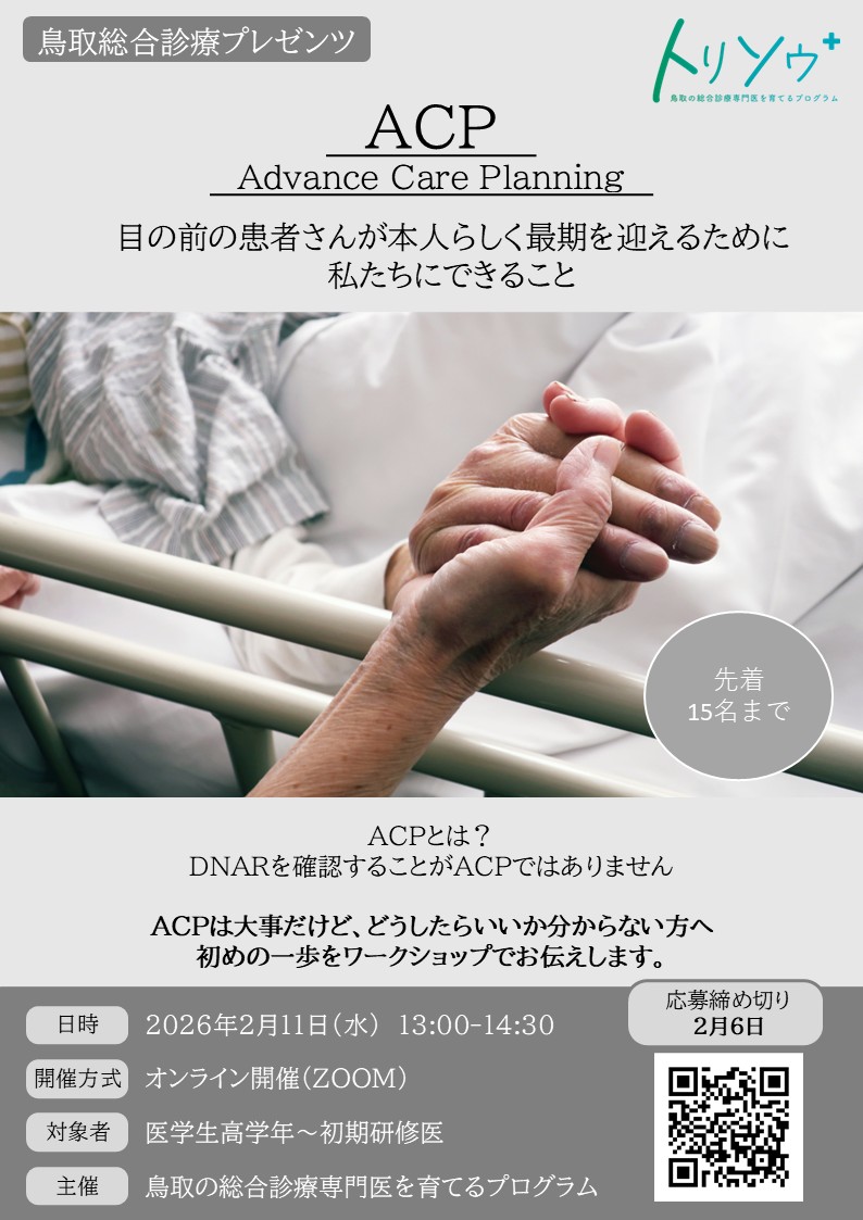 主催:鳥取の総合診療専門医を育てるプログラム(トリソー)https://cbfm.med.tottori-u.ac.jp/sougousinryou/