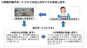 電子ポートフォリオを利用して、学生さんの学びのサポートをしています。実習に行った後、そこで体験したこと・感じたこと・次に何をするか?をインターネット上にあるプラットフォームに記述し、それについて教員がフィードバックを行います。そのサイクルを回しながら、地域医療の現場での学びを学生さん自身のものにしてもらいたいなあと考えて運用をします。